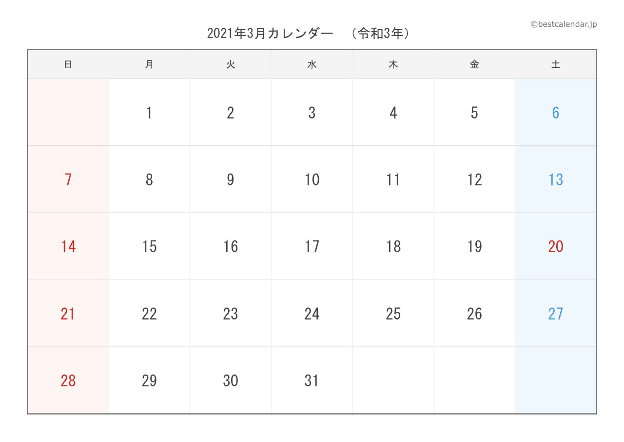 PDFファイルは高画質印刷に最適化されており、きれいに印刷できます。PNG画像形式は、スマートフォンやタブレット、パソコンでの表示に適しています。2021年3月のスケジュール管理にぜひご活用ください。