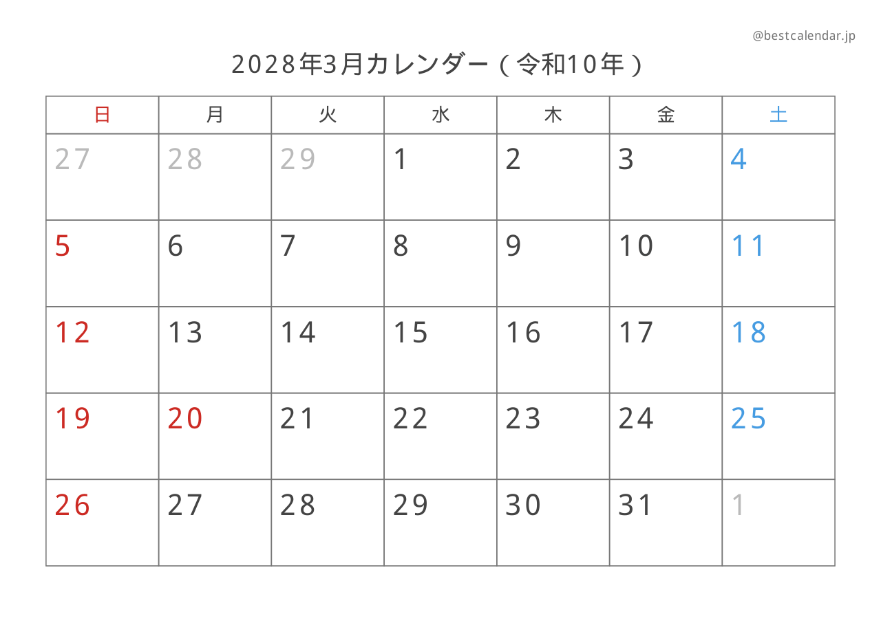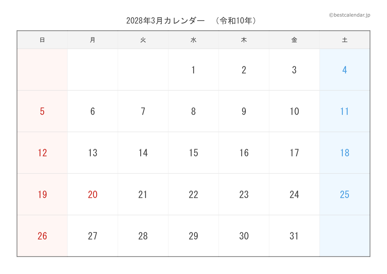 PDFファイルは高画質印刷に最適化されており、きれいに印刷できます。PNG画像形式は、スマートフォンやタブレット、パソコンでの表示に適しています。2028年3月のスケジュール管理にぜひご活用ください。