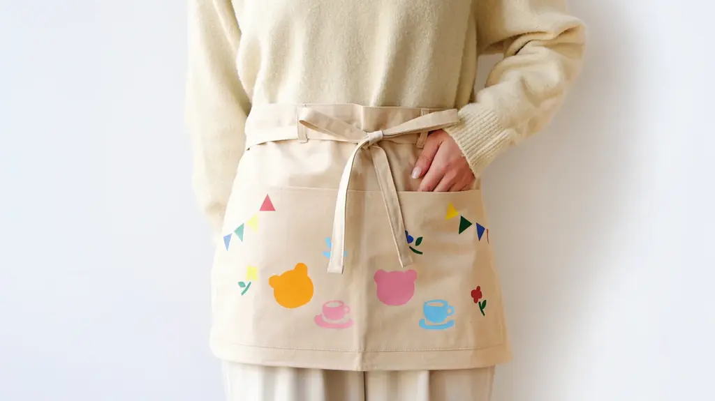 ワークショップでは、コーヒー染めのアップサイクル素材を使って“世界にひとつだけのオリジナルエプロン”を作ります。好きなデコレーションパーツを組み合わせ、親子でお揃いのエプロンを作ることができます。