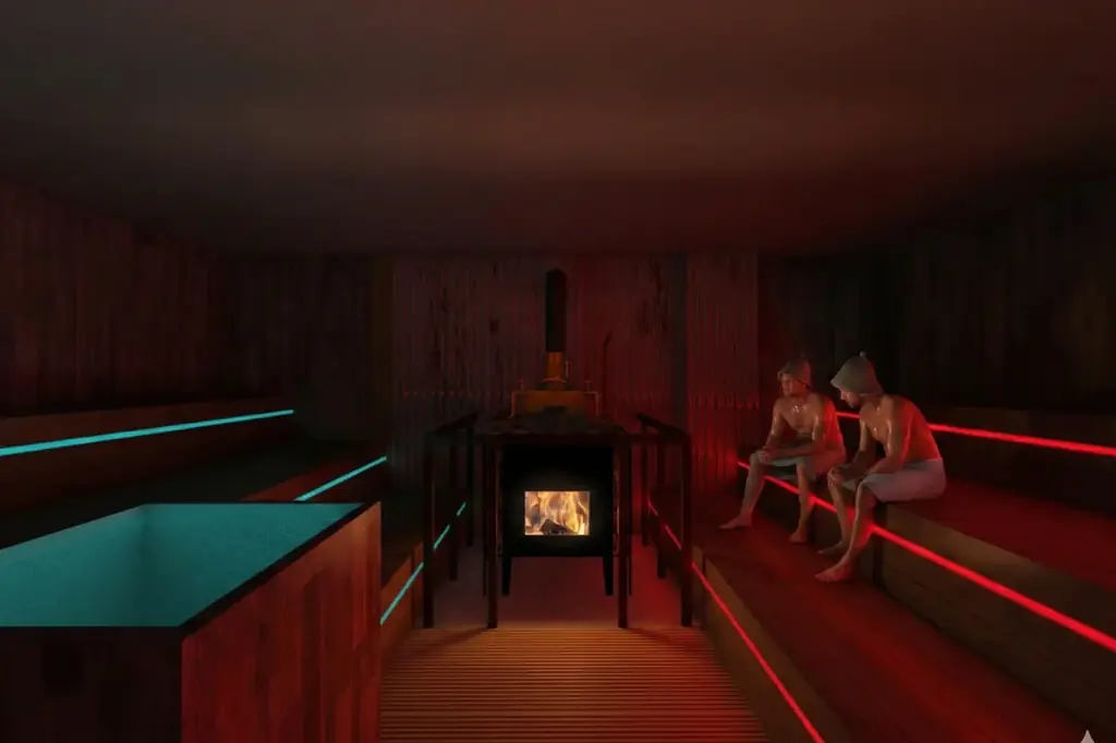 核となるのはサウナ室内で氷水を浴びる「BUGクナイプ」。薪ストーブ×スチームで蒸気を制御し、光・音演出と温冷の連続で思考が引っ込み感覚が前に出る没入体験を狙います。