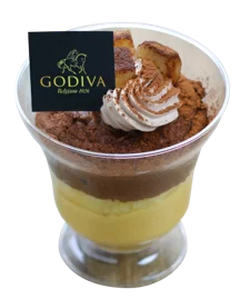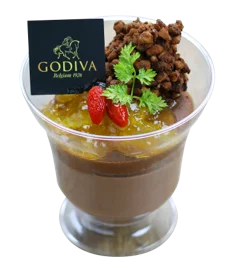 - ゴディバ ハイカカオチョコレートのアーモンドゼリー:ベルギー産カカオ70%チョコレートと杏仁が絶妙なコントラスト。濃厚なダークチョコレートムースをふわりとのせた2層仕立て。