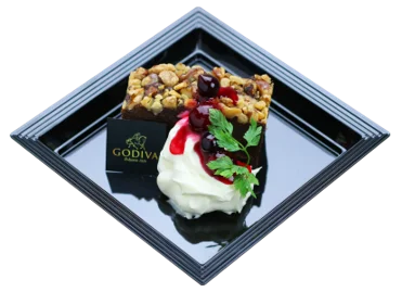 - ゴディバ ダークチョコレートブラウニー:ベルギー産カカオ70%チョコレートを使った濃厚で贅沢なブラウニーにカスタード香るクリームのとろけるようなくちどけ。