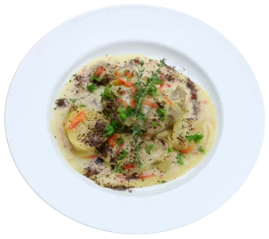 - ゴディバ ワーテルゾーイ(ベルギー風) 鶏肉のクリームソース煮込み:ゴディバ発祥の地ベルギーの郷土料理にホワイトチョコレートが奥行とコクを添え、ダークチョコレートと香草の巧みなブレンドが洗練された味わいに。