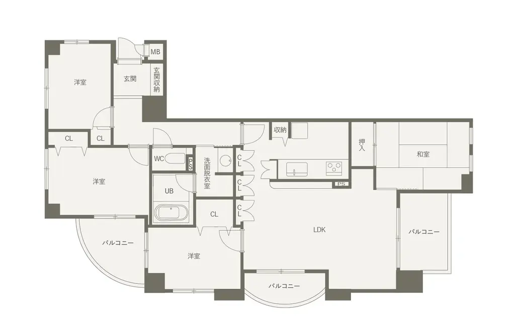 プランはアイランドキッチンを起点に、生活の主要箇所(キッチン→水回り→収納)へ行き止まりなくつながる回遊動線を採用しています。限られたマンション空間において、動線の重なりを抑えつつプライベート動線とパブリック動線を分離することで、日常の動きが自然と快適になります。