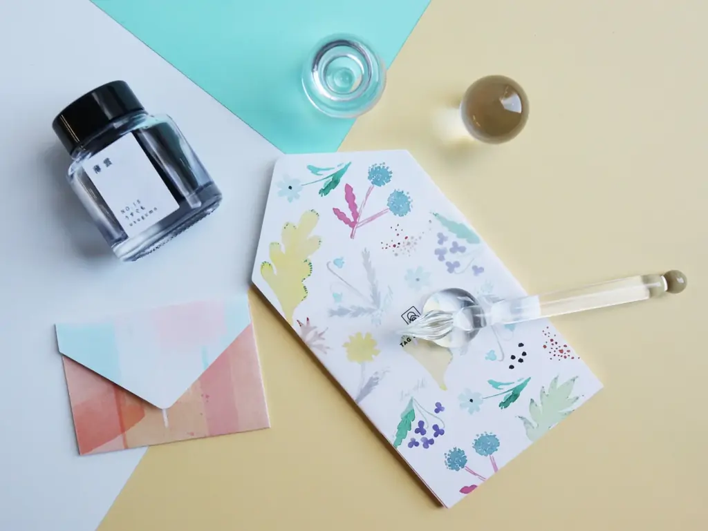 TAG STATIONERY インク、ガラスペン、移し替え用瓶、ミニ封筒パッド等 インク1,760円〜、ガラスペン6,600円、INK PUDDLE 6,930円、MINI ENVELOPE PAD 825円