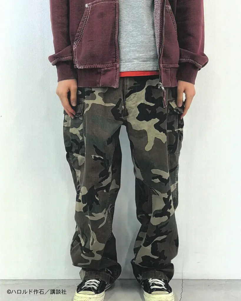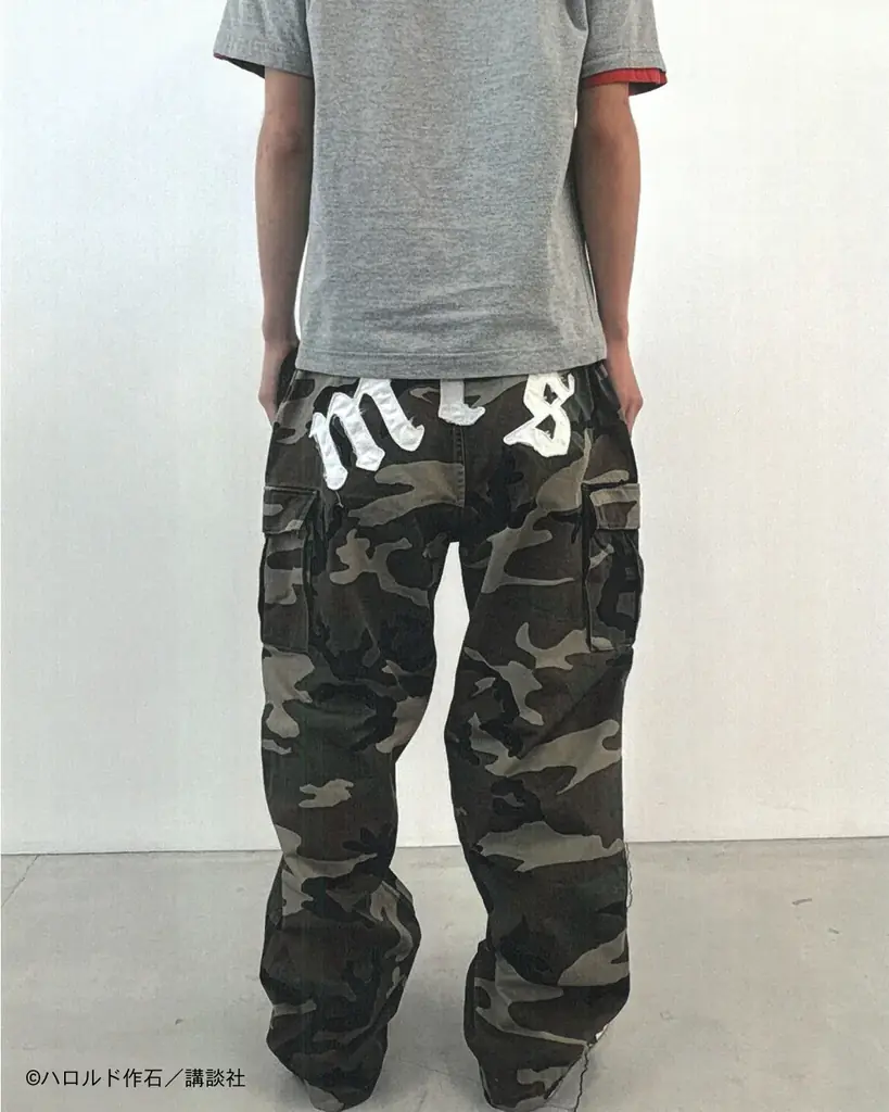 特徴:コユキの着用に着想を得たバギーシルエットで裾はドロスト仕様。ヒップに「MCS」ワッペンを配し、ポケット内側には「BABY STAR(Brightest)」の歌詞をプリント。着る人を鼓舞するデザイン要素を内包。