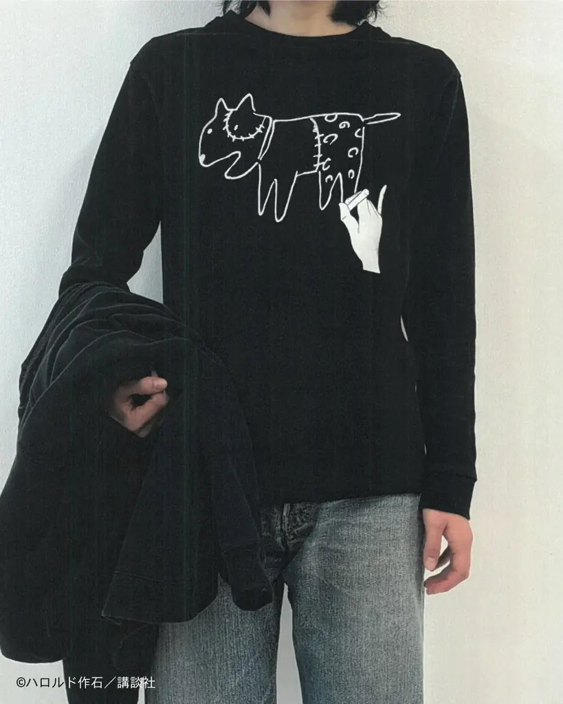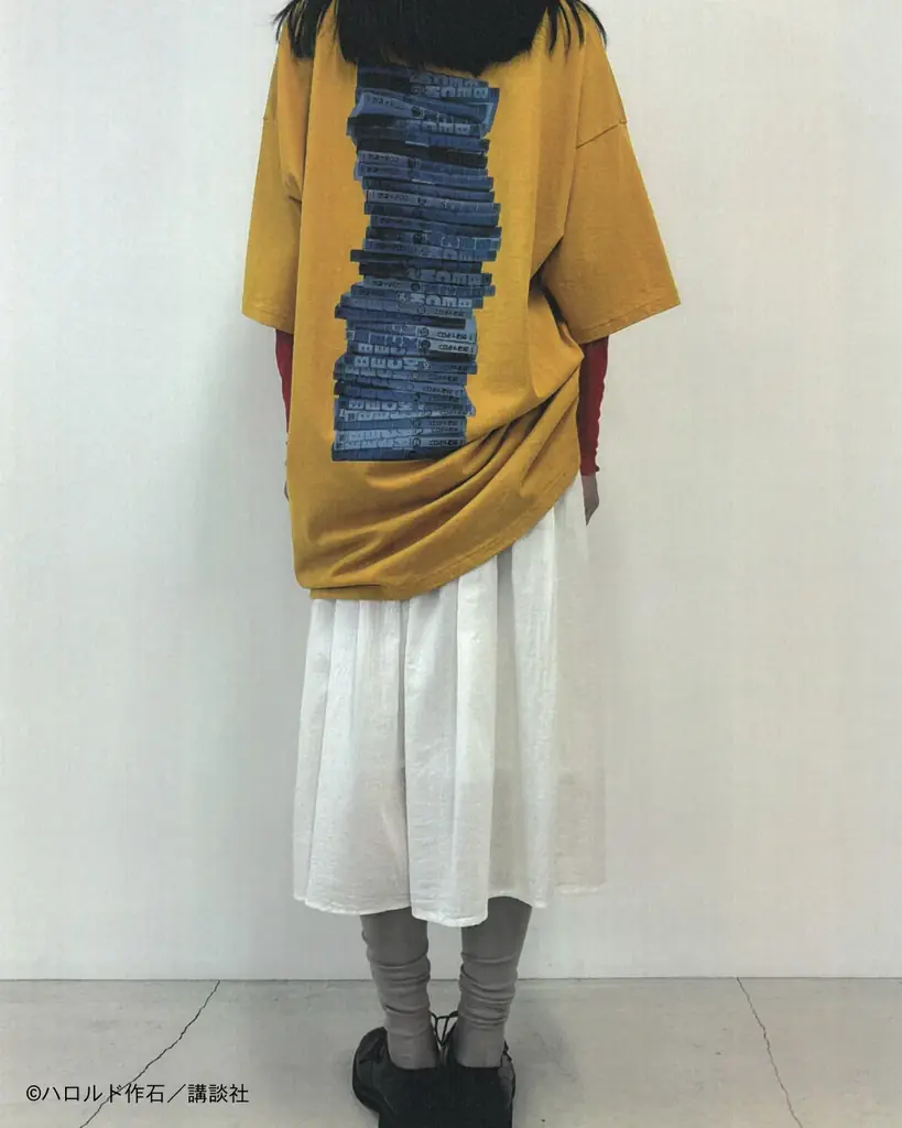 特徴:16巻の挿し絵をベースに染み込みプリントで手書きのような風合いを表現。ヴィヴィッドなカラーと合わせることでロックバンドのカジュアルな雰囲気を演出。