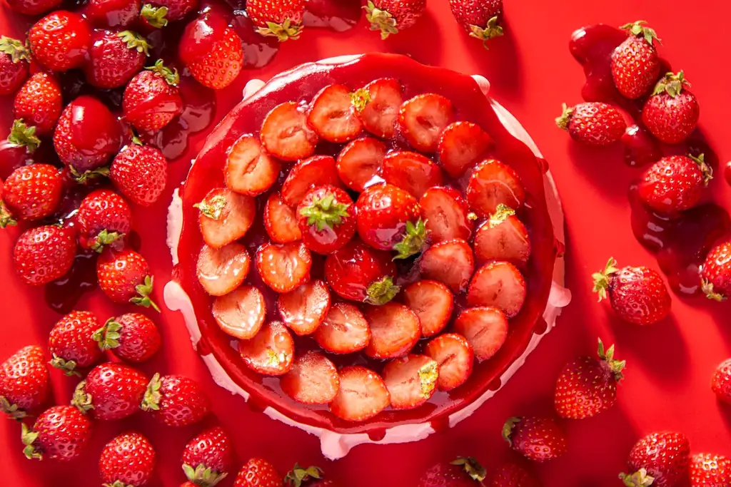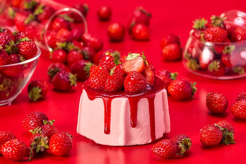 さらに味のアクセントとして、自家製ラズベリージャムとクランベリー果肉を加えることで、苺だけでは出せない酸味と果実感をプラスしています。これにより甘さと酸味のバランスが取れた仕上がりになっています。