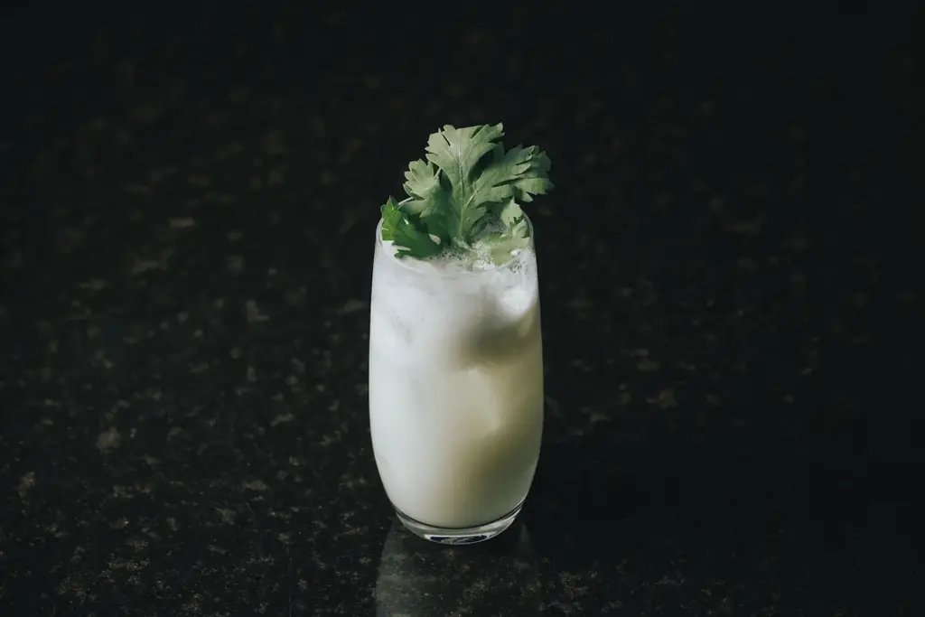 - よもぎハーブフィズ 2,100円:よもぎの爽やかさとミルクのまろやかさを合わせた和ハーブカクテル。よもぎの葉を添え日本の春・新緑をイメージ