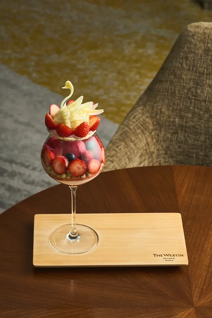 ウェスティン都ホテル京都のティーラウンジ「メイフェア」で、2026年3月1日(日)から4月30日(木)まで販売される「スワンのいちごパフェ」は、白鳥が羽を広げた優雅な姿をホワイトチョコレートで表現したビジュアルと、旬の苺を中心に構成された多層の味わいが特徴の季節限定パフェです。