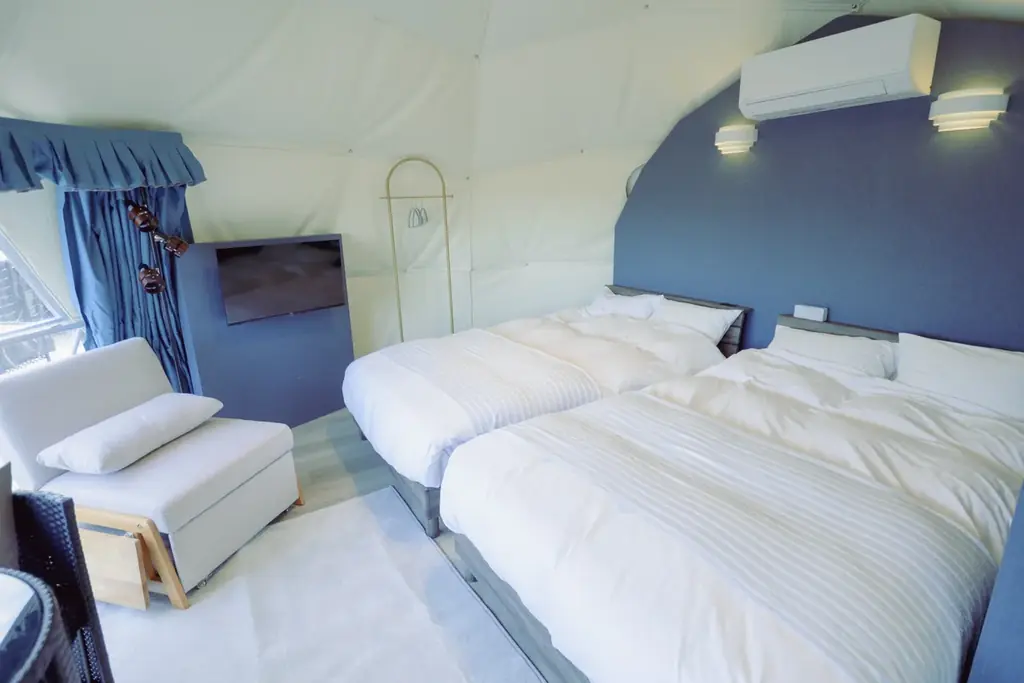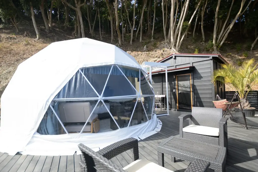 客室構成と設備の詳細 — 3棟のドームとプライベートサウナ
