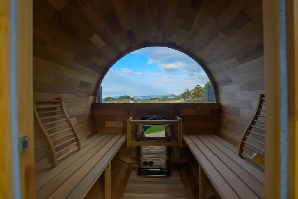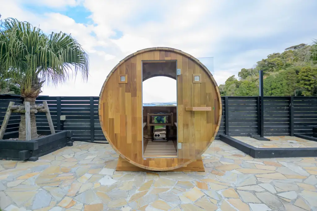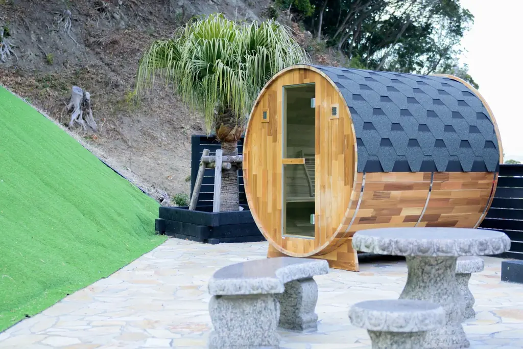特にファミリードームに備えられたプライベートバレルサウナは、滞在型のサウナ体験を可能にする設備として訴求されています。サウナ内の写真やテラス周りの様子もリリースで紹介されています。