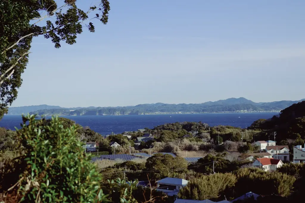 SHINONは東京からのアクセスが良好で、車で約90分の距離に位置します。館山湾や大房岬といった海の景観と、周囲を覆う森の環境が同じ敷地から望める点が特色です。施設から見える星空や木々の間から覗く夜景も広報資料で強調されています。