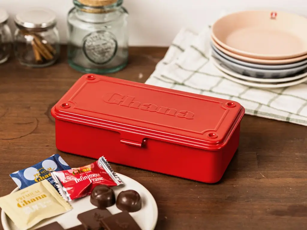 今回のコラボレーションは、道具としての普遍的価値を持つ東洋スチールのツールボックスと、ガーナが長年培ってきた味わいづくりが組み合わさった提案です。使うほどに価値が深まる道具と、開けるたびに好みと出会うチョコレートの組み合わせは、日常の時間に新たな視点を与える構成となっています。