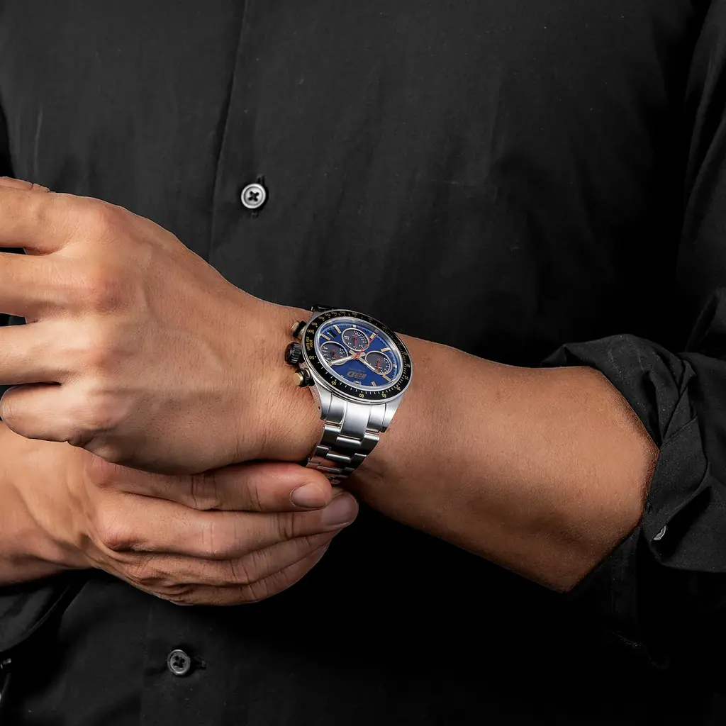 サブダイヤルはスピードメーターなど車載メーターをイメージして設計されており、視認性を確保しながらも車そのもののディテールを再現しています。これにより、ダイアルを眺めるたびに車の鼓動を想起させるデザインとなっています。