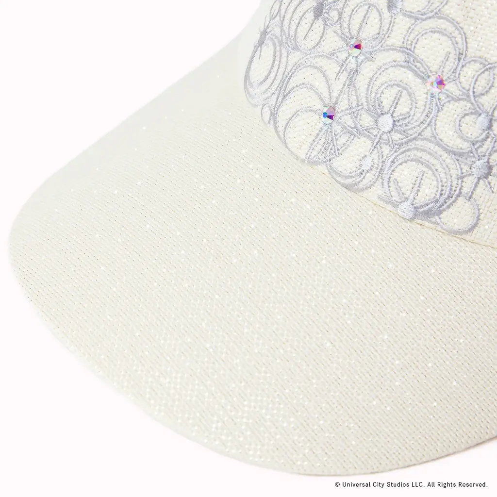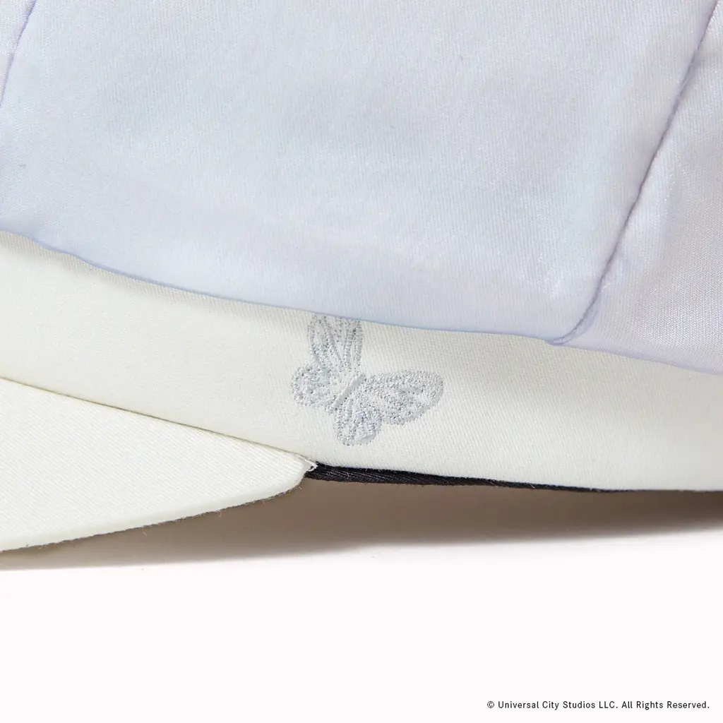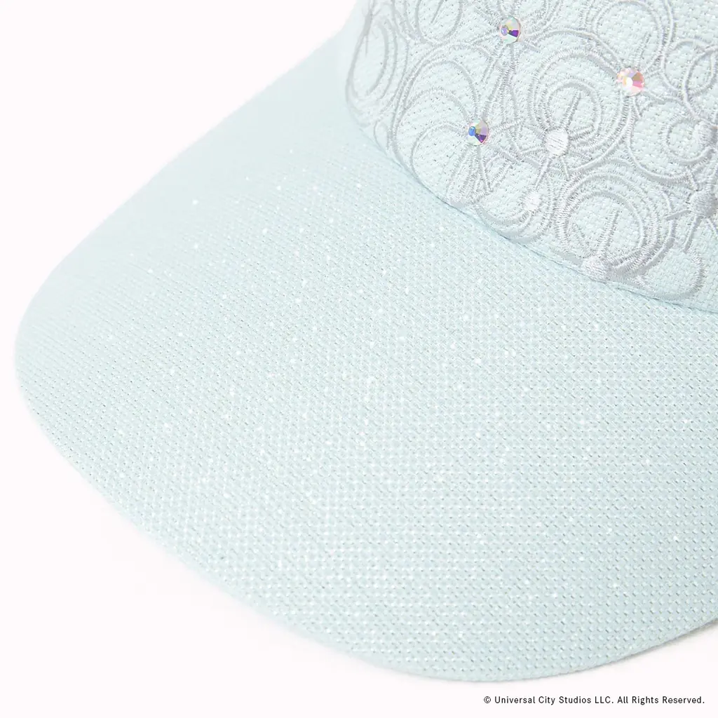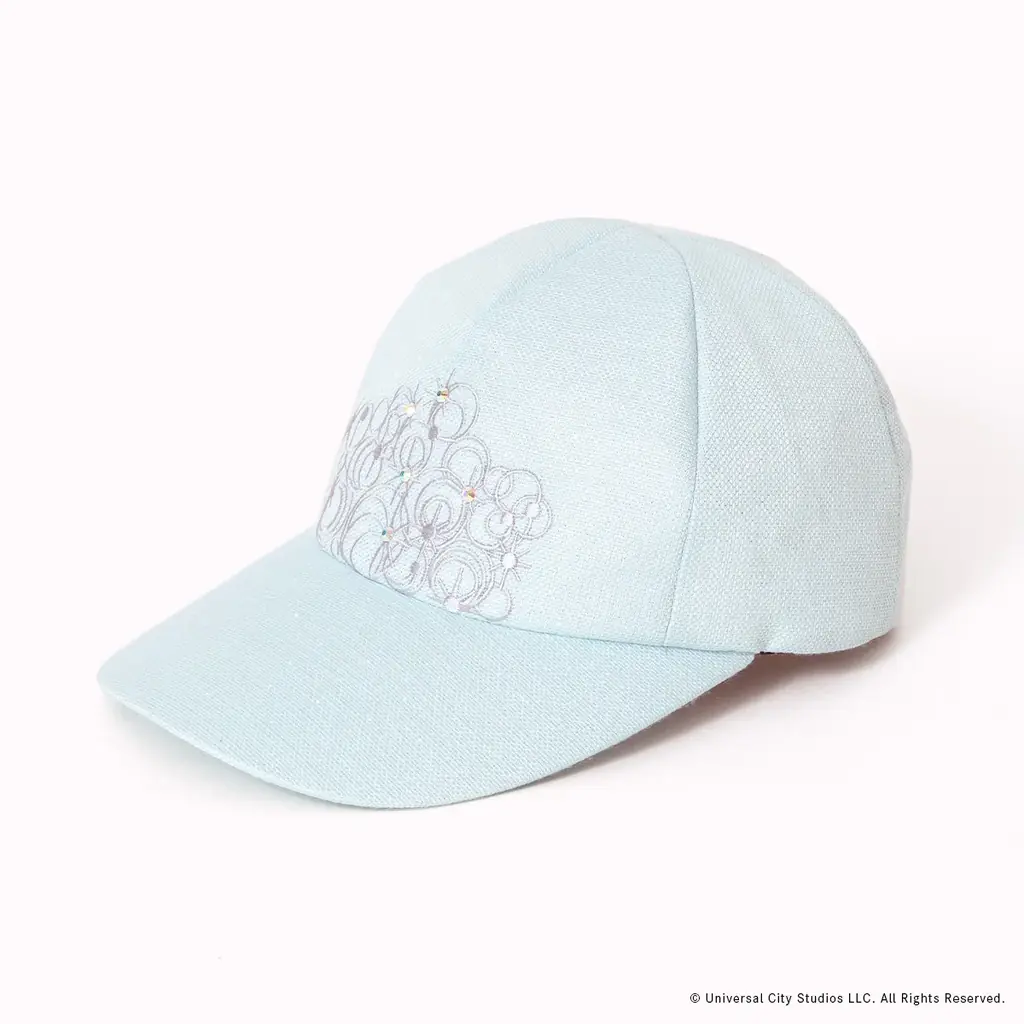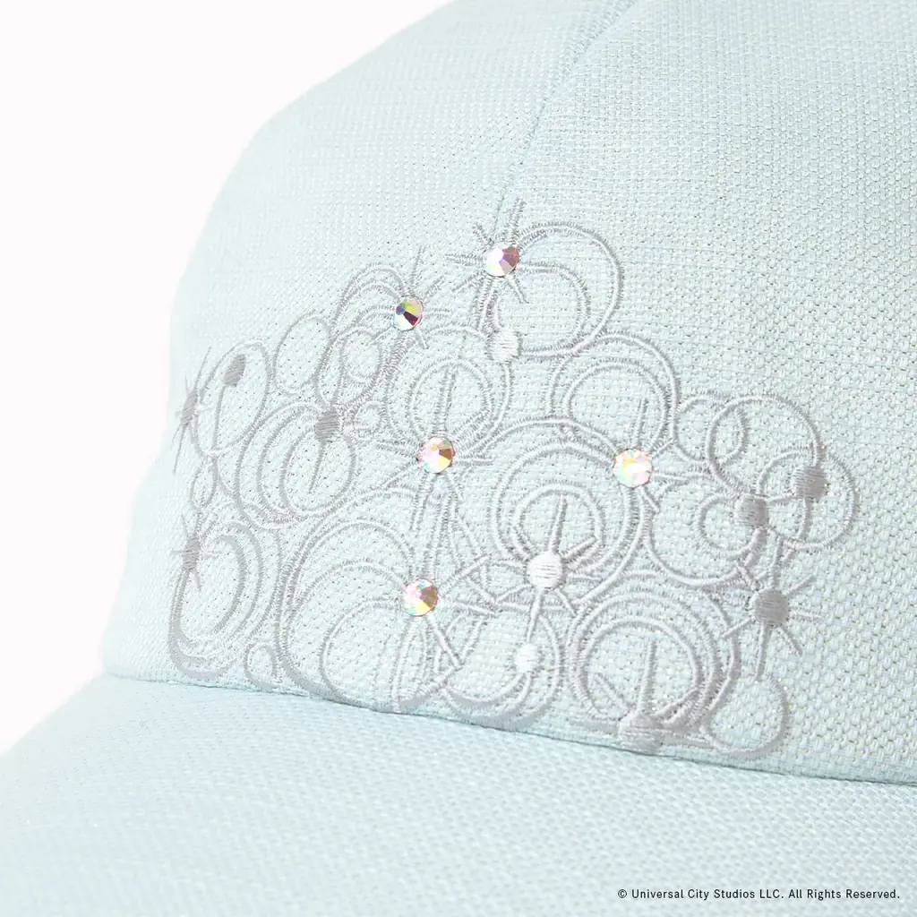 価格は¥13,750(税込)。カラーバリエーションはLIGHT BLUEとOFF WHITEの2色展開です。ラメ入りの生地を用い、グリンダのティアラを繊細な刺繍で表現したキャップに仕上げています。