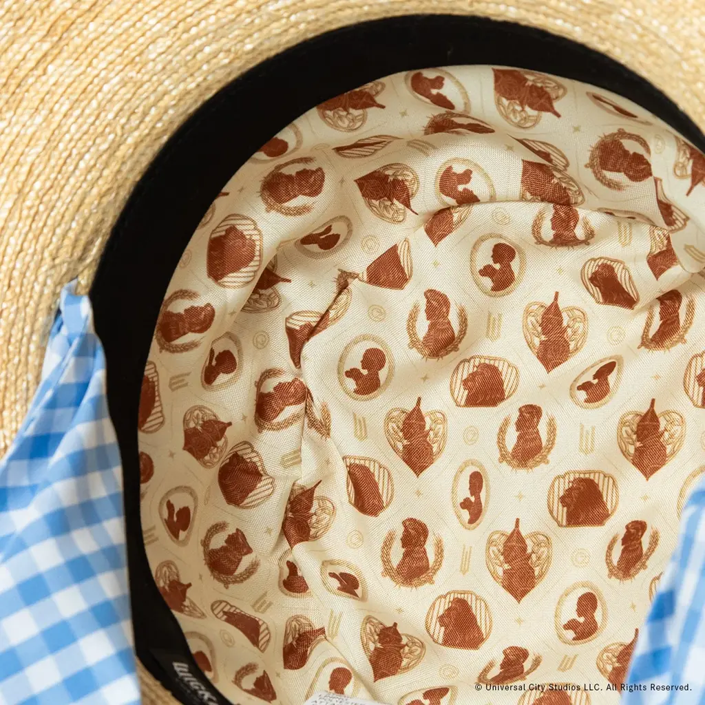 価格は¥17,820(税込)。カラーはBEIGEです。本体はブレードハットのフォルムで、裏地に「カンザスから来た少女」「ブリキの男」「カカシの男」「ライオン」を描いたプリント生地を配しています。