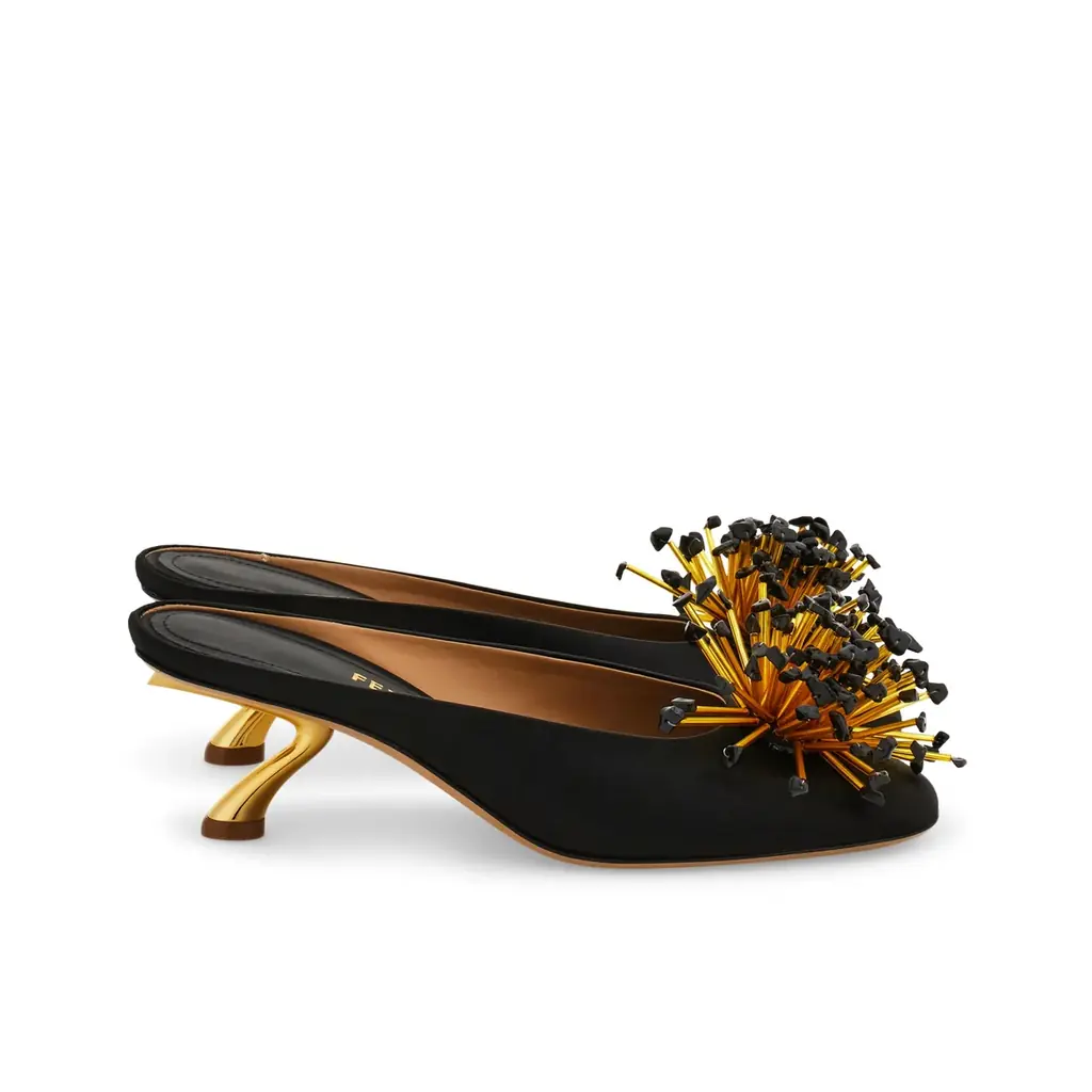 • 彫刻的ヒールのミュール:デザインの主役となる造形美。