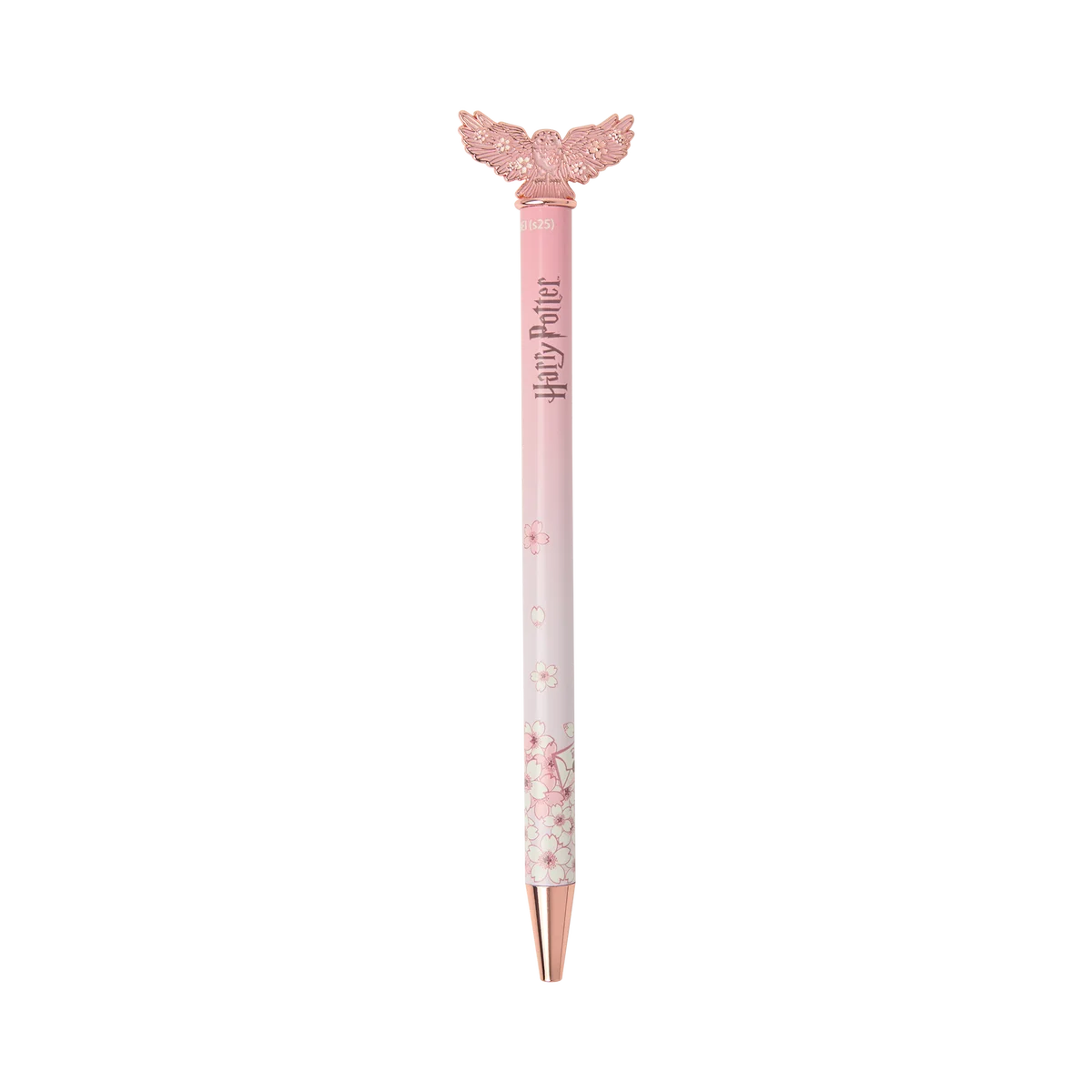 桜をまとったフクロウモチーフのボールペン。淡いピンクのデザインで手元を彩ります。