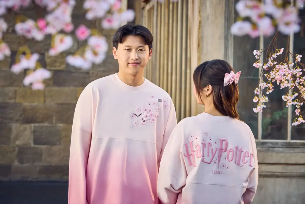背面に大きく「Harry Potter」ロゴが配置されたスピリットジャージ。やわらかなピンクトーンに桜柄があしらわれ、軽やかな着心地でツアー内や春の外出着として適しています。