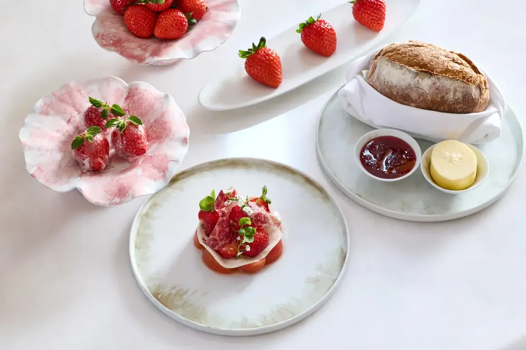 副総料理長・中野琢治による「シーズナルマーケットメニュー」は、2カ月ごとに食材テーマを設けて展開されるアラカルトシリーズです。2026年春は加藤農園のブランドいちご「あまりん」を使用し、果実が最も輝く熟成の瞬間を見極める独自の「あまどり」によって収穫されたいちごが登場します。