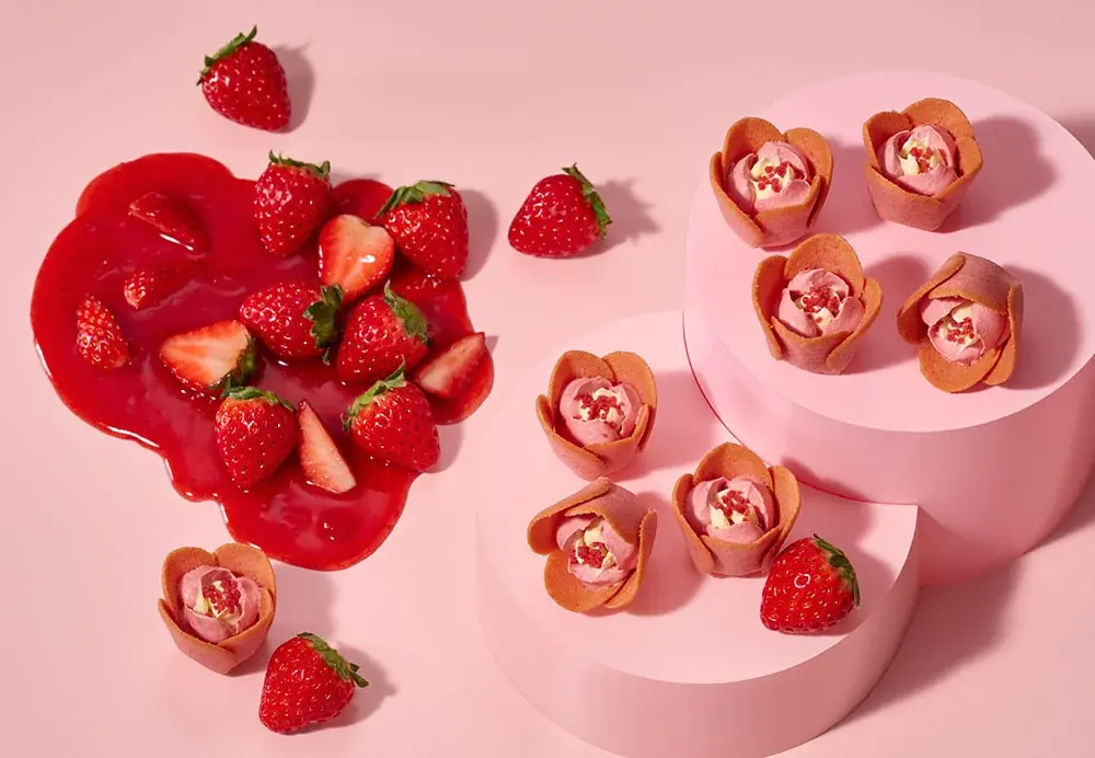 「TOKYO TULIP ROSE」は、香ばしいチューリップ形の花びらクッキーにとろけるショコラクリームを詰めた代表作『チューリップローズ』で累計5,000万個を販売しているブランドです。今回の新作は“苺の王様”と称される国産あまおう苺とバターのコクを組み合わせた春限定のプレミアムフレーバーとして用意されます。