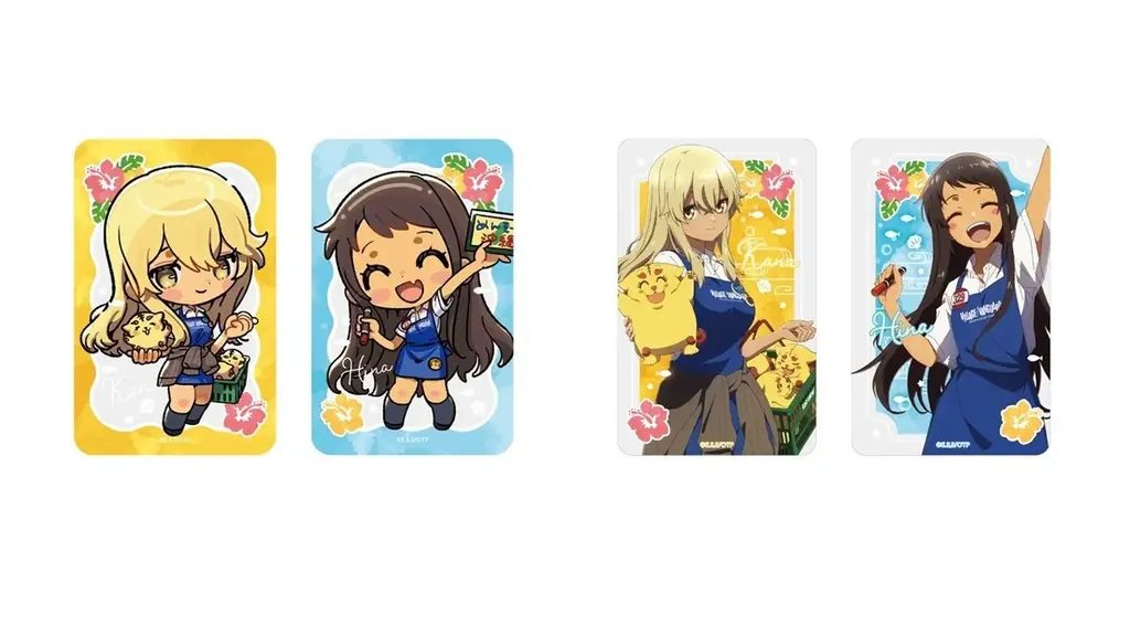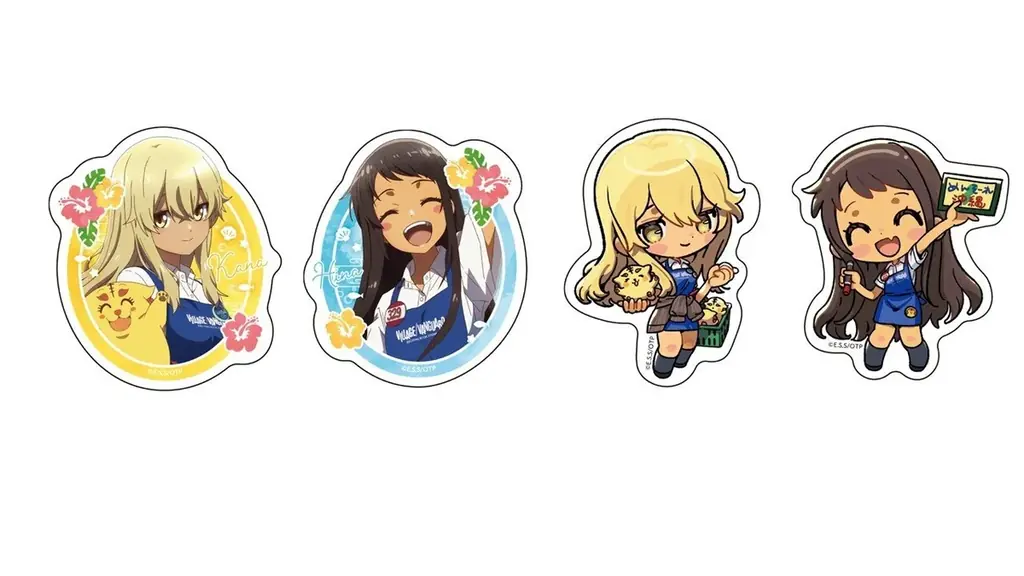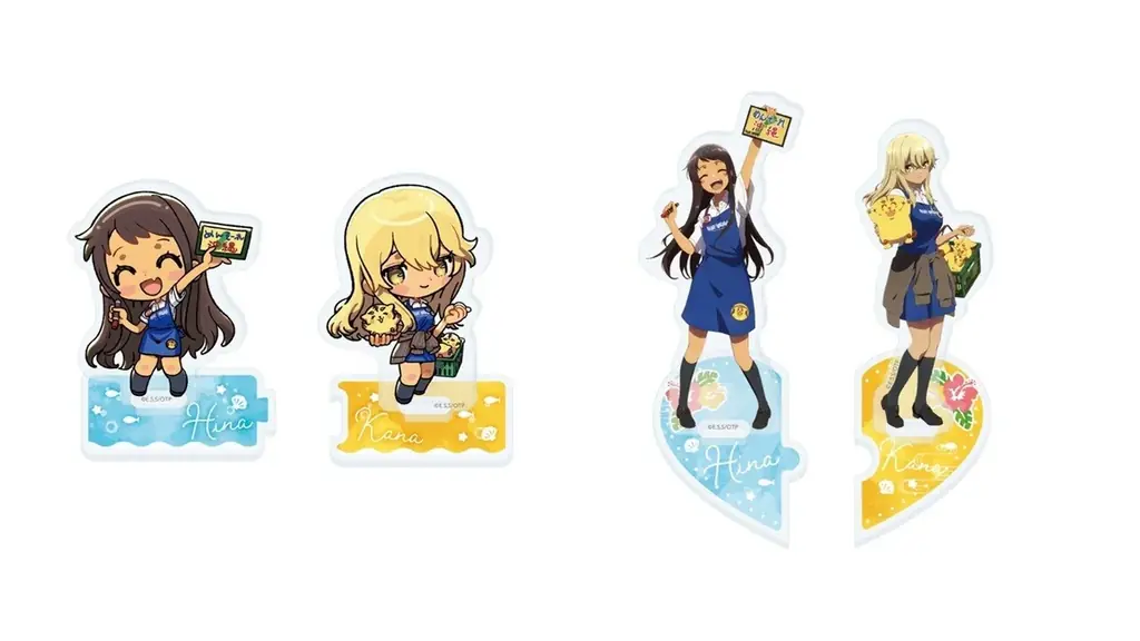 小さな日常使いのアクセサリー類としては、アクリルキーホルダー、アクリルフィギュア、ダイカットステッカー、缶バッジ、クリアカードが用意されている。いずれも全4種展開で、等身キャラ2種(喜屋武 飛夏・比嘉 夏菜)とミニキャラ2種の構成である。