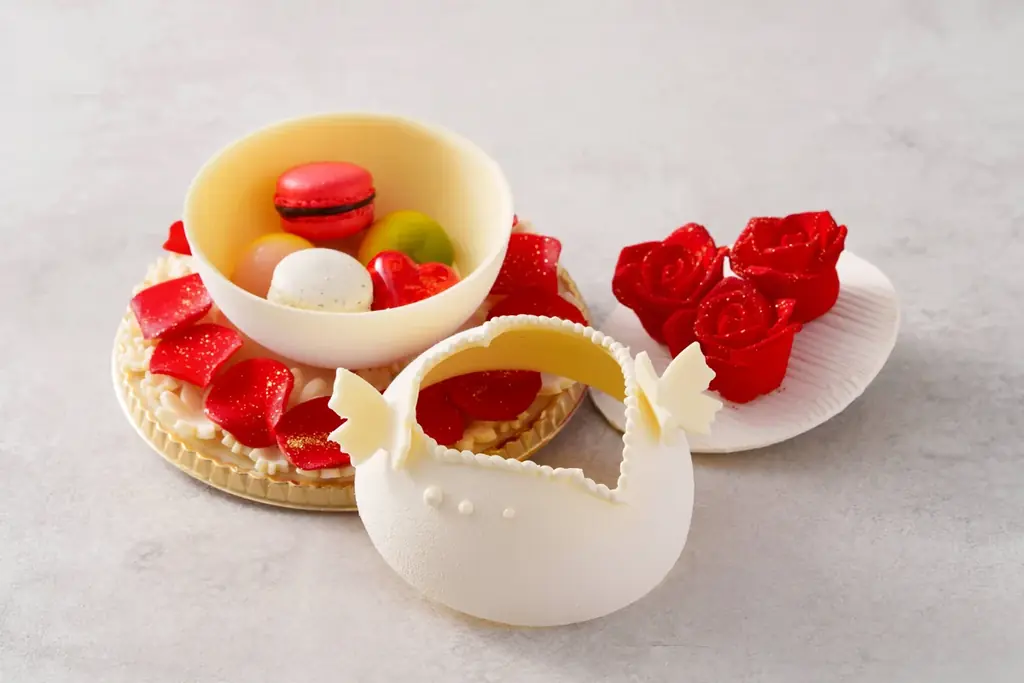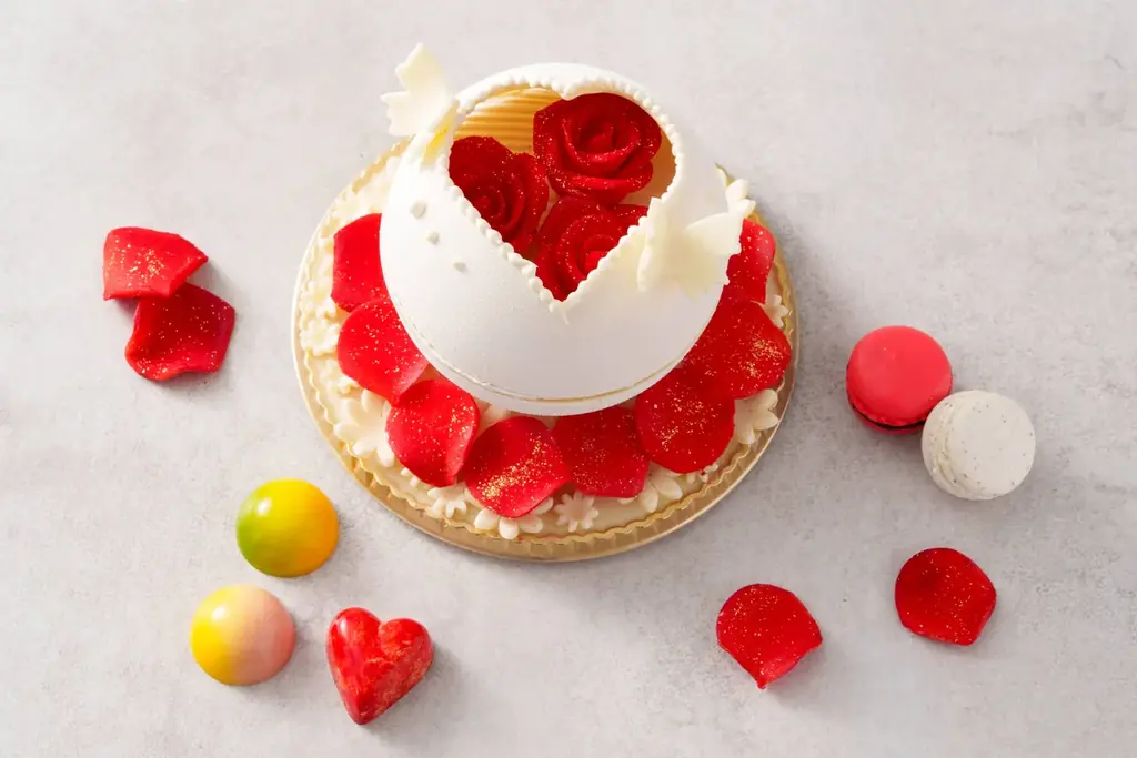 セルリアンタワー東急ホテルが2026年3月7日(土)から3月14日(土)まで、ペストリーショップ(LBF)にて販売する「セルリアン スイート ボックス」は、箱そのものから中身までがすべて食べられるというユニークなスイーツギフトです。なめらかなホワイトチョコレートで形成した円形のボックスに可憐なリボンなどの装飾を施し、蓋には「愛情」の花言葉を持つ深紅のバラがブーケのように飾られています。