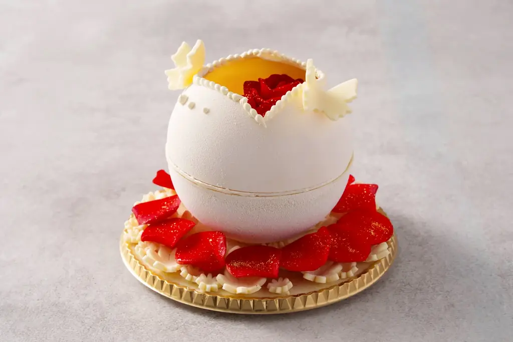 見た目の美しさだけでなく、春らしい季節感と味わいを大切にした構成で、贈り物としてもホワイトデー向けのギフトとしても適した一品です。外装の細部や装飾までパティシエの技術が見て取れ、受け取った瞬間に特別な気持ちが伝わるよう工夫されています。