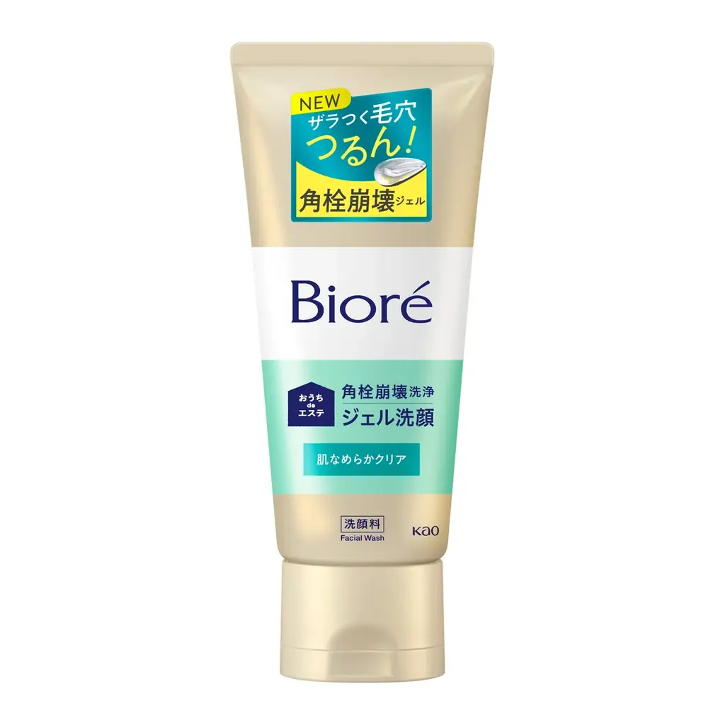 | ビオレ おうちdeエステ ジェル洗顔 肌なめらかクリア | 60g/180g | 角栓崩壊ジェル洗顔。トロメタミンが角栓に浸透し、内部から皮脂が溶け出すことでジェルが白っぽく変化。保湿成分(ソルビトール)配合。 | 2026年4月4日 全国発売 | リラックスアロマ。お風呂場での使用推奨。朝の使用で化粧のり改善。 |
