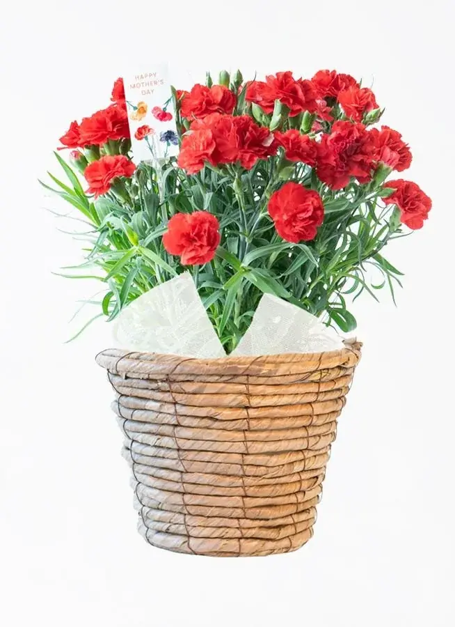 ・【母の日】産地直送 カーネーション 鉢植え 感謝の気持ち 5号 ブラウンバスケット/岩手(岩手園芸)