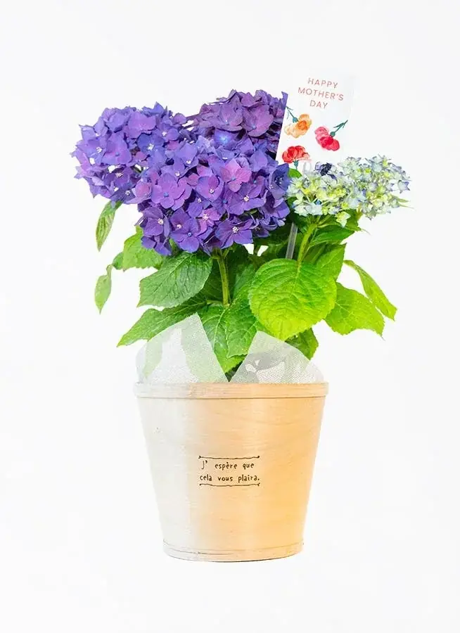 ・【母の日】あじさい 鉢植え ディープパープル ウッドポット