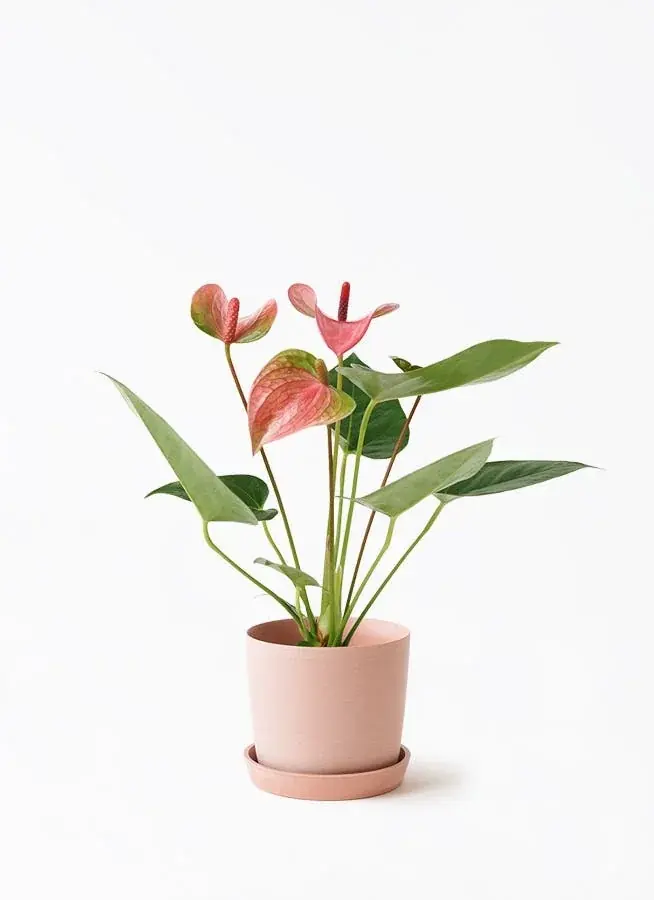 • 観葉植物例:アンスリウム3号(ピンク鉢カバー付)/ガジュマル4号(シーグラスポット付)