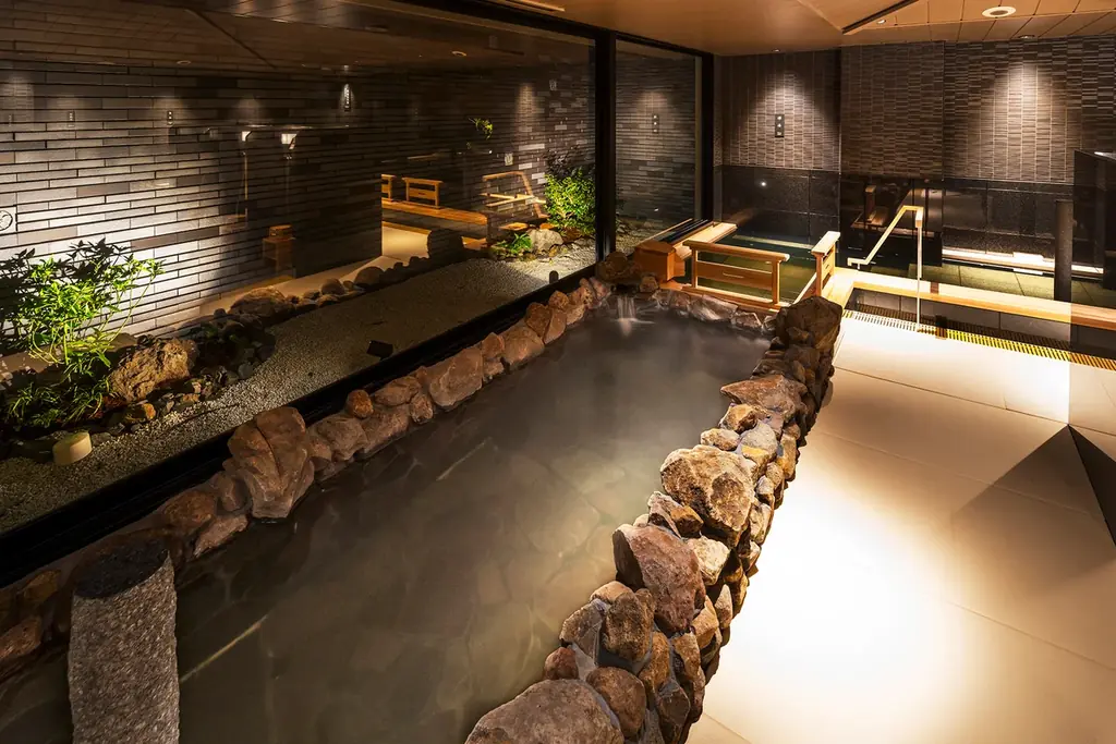 | 共用設備 | 大浴場(内湯、ドライサウナ、水風呂)/貸切風呂4か所(無料)/食事処(光庭を臨む)/湯上り処/ラウンジ/癒し処/お土産処/喫煙所 |