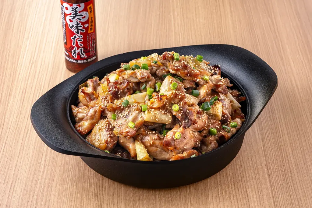 - 信州上田発祥の郷土料理。すりおろしにんにくを効かせた醤油ベースのたれをたっぷりかける焼き鳥。地元名産の“美味だれ”を使用し、物販でも販売しています。