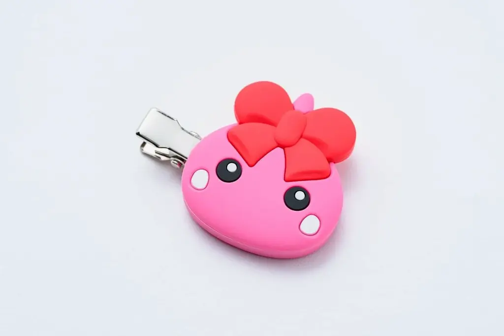 前髪クリップは濃いめピンクの“エモい”色合いを採用しつつ、大人でも普段使いしやすい落ち着いた可愛さにまとめられています。サイズは約H3.8×W4.6cm(最大)です。