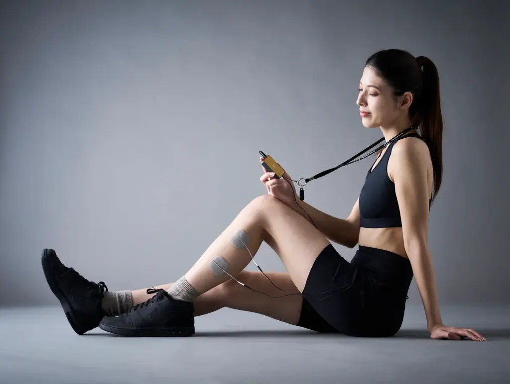 RUCOE RUNはランニング時の使用を想定した電気刺激タイプのコンディショニング機器で、ランニング前に筋肉を目覚めさせる目的や、レース直前・直後のケアに適したモデルです。電気刺激を用いて筋肉の準備や回復を補助します。