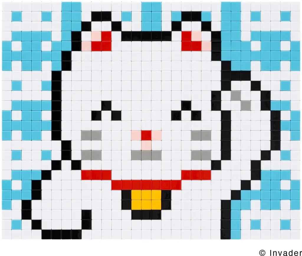- エイリアス全20点のうちの一作。招き猫をインベーダー流に再解釈したモザイクであり、象徴性の高いビジュアルが展開される。