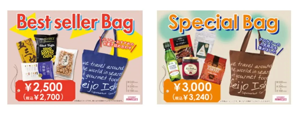 数量限定で「お菓子ベストセラーバッグ」と「グロサリースペシャルバッグ」を販売(無くなり次第終了)。