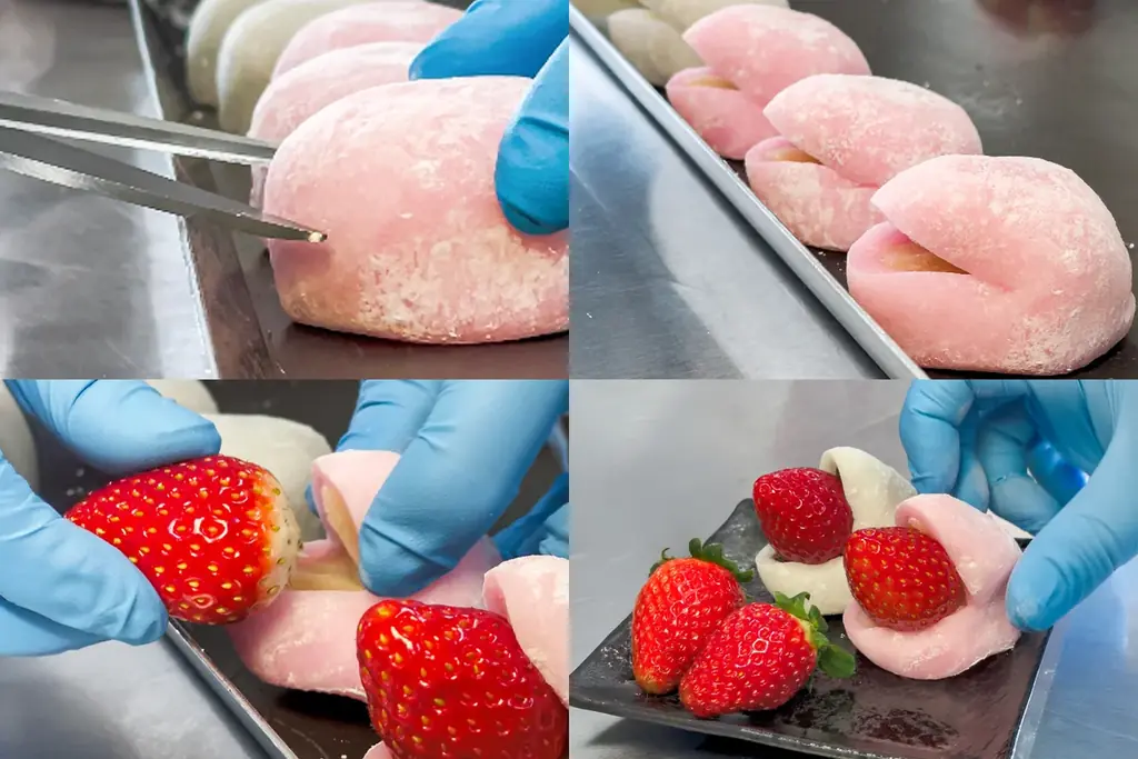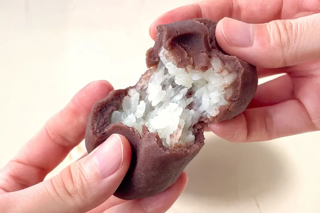 餅にはぼた餅と同様、千葉県産マンゲツモチの一等級を使用。強い粘りと圧倒的なコシが特徴で、餅が苺と餡に寄り添いながらも存在感を放つ設計です。餅の歯切れの良さ、層ごとにほどける食感の重なりが商品説明で強調されています。