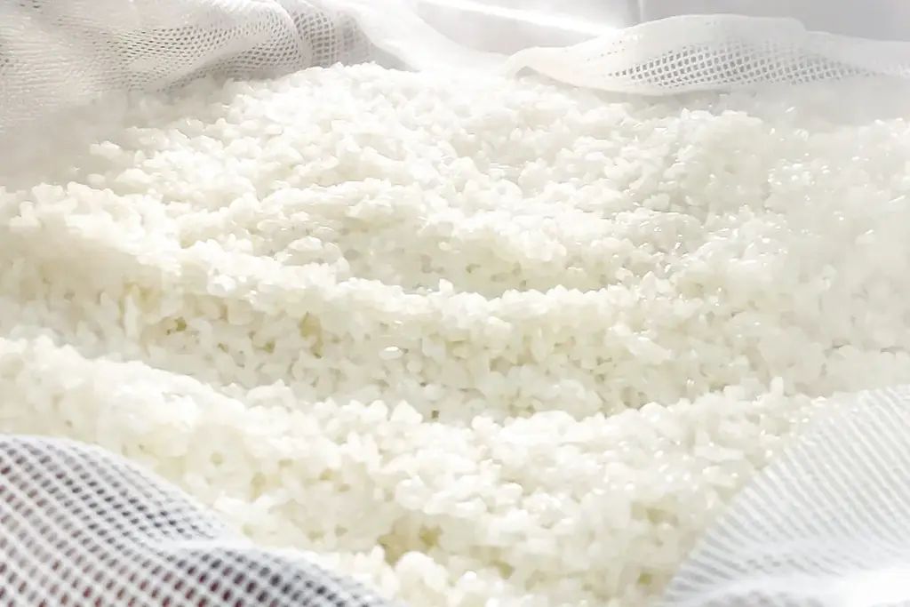 - 蒸篭蒸し:米粒の艶と透明感を引き出す、ムラなく熱を入れる方法。