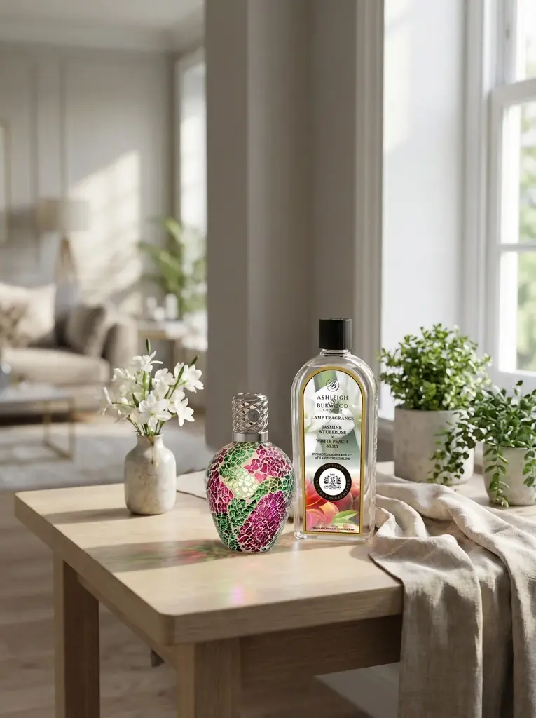 - カリス成城(タウンフロント 5F):アシュレイ&バーウッド二子玉川店限定 15周年限定ランプフレグランス500ml 3,520円。ジャスミンとホワイトピーチを配した華やかな香り。