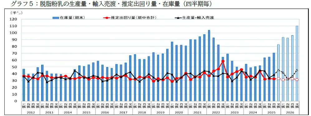 | 背景(在庫問題) | 2025年度末の脱脂粉乳在庫見込み:82,800トン(前年度比約59%増)—用途拡大と認知向上が課題 |