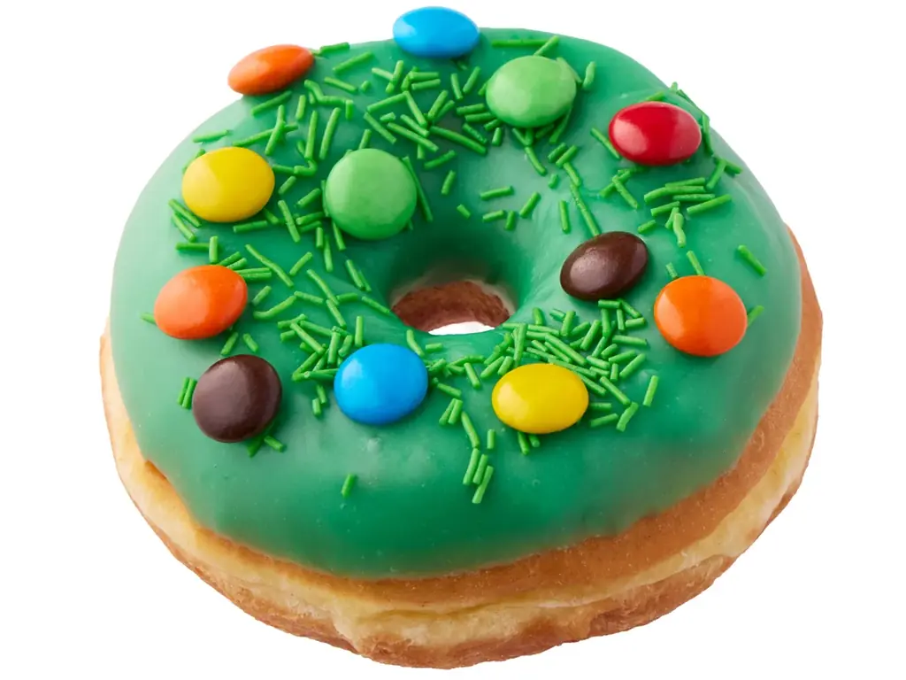リミテッド グリーンレイズド(LIMITED GREEN RAISED) 580円:鮮やかなグリーンアイシングとスプリンクル、チョコキャンディのポップな見た目。