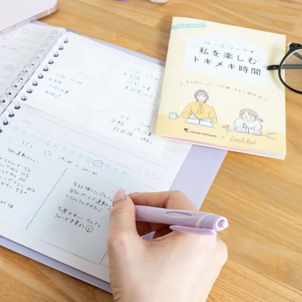 本イベントはルーズリーフの汎用性と手書きの楽しさを軸に、日常のさまざまな場面で活用できる具体例を示すことで、ルーズリーフを「暮らしを楽しむアイテム」として広く紹介することを目的としています。A5とミニサイズの活用や抜き差しが自由なバインダー機能を活かした使い方を中心に、スケジュール管理、日常ログ、スクラップ、カスタマイズといった多彩な用途を実際の展示で提示します。