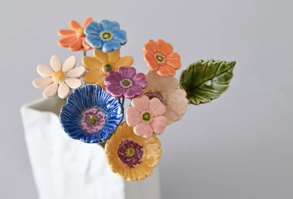 Kis keramia:陶器でつくる造花(陶器のお花)。ハンドメイドの質感と永続する見た目を併せ持つアイテムとして紹介されています。