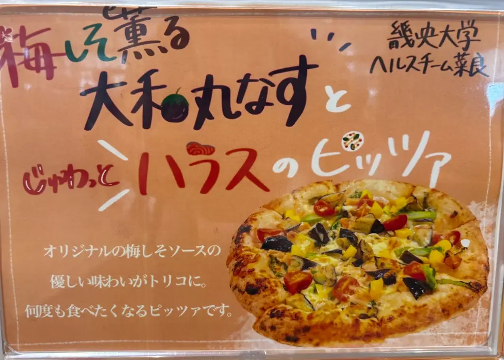 また、帝塚山大学、近畿大学、畿央大学、奈良女子大学の4大学の食育ボランティアサークルの学生たちが考案した特別メニューも注目です。大和の伝統野菜である“大和丸なす”を使用したピザが販売される予定で、地域の食材を活用した新しい料理を楽しむことができます。