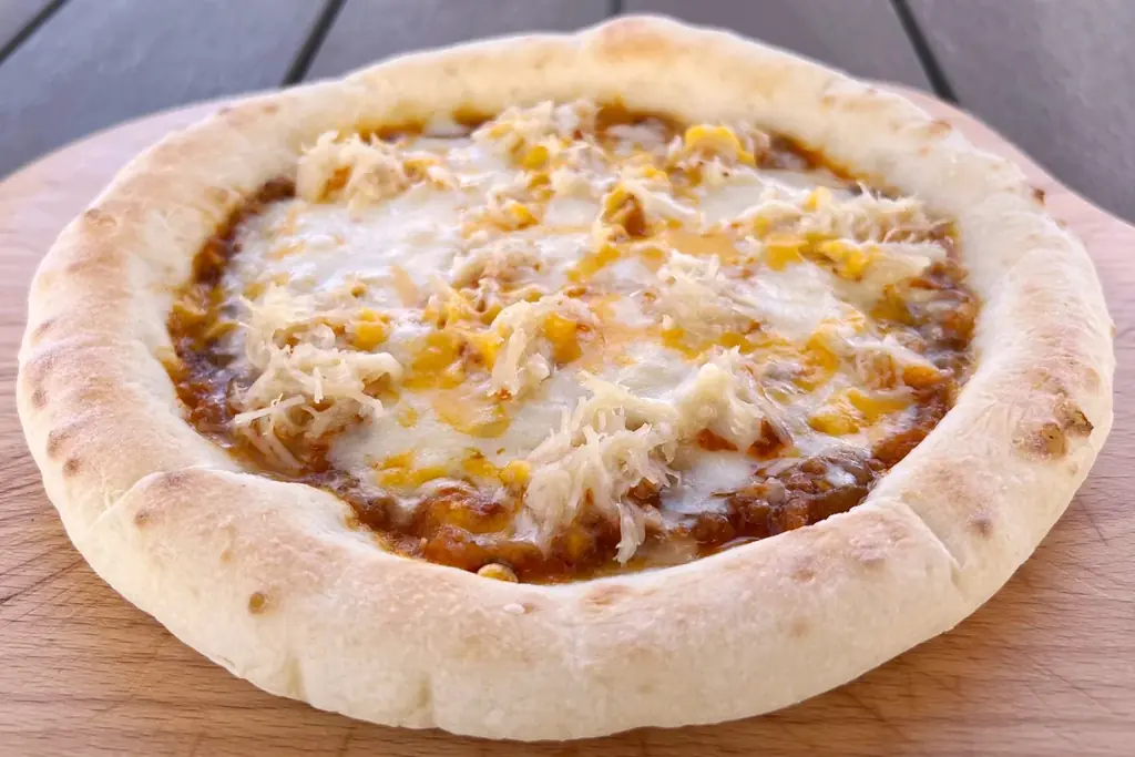 - 貝柱のピザ(ナポリの貝柱ミート) – 和牛100%の自家製ミートソースにホタテの貝柱をトッピング。北海道産のチーズをたっぷり使用し、濃厚な味わいが楽しめる。