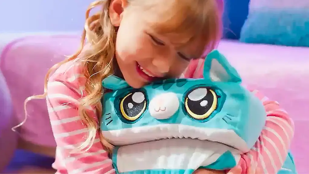 『ピローキューブキッズ』は、ぬいぐるみとして遊ぶことができるだけでなく、眠くなった際には口をパタンと開くだけでフルサイズのまくらに早変わりします。お子さまのそばに寄り添い、素敵な友だちとして活躍します。