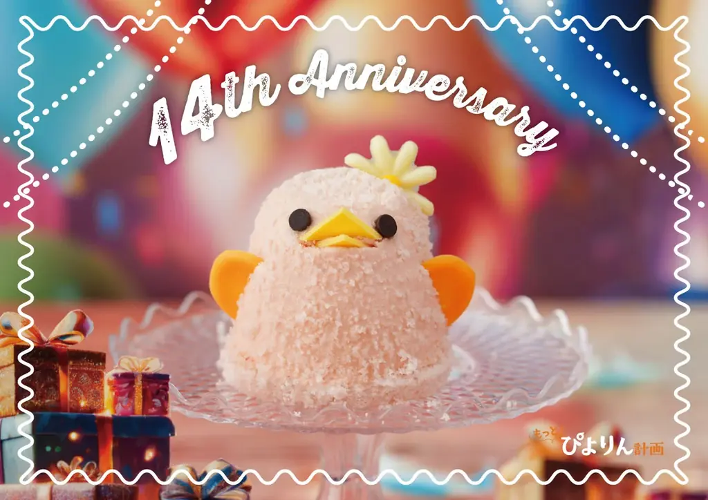 記念すべき「14th Anniversary ぴよりん」や、アクリルキーホルダー付きの「14th Anniversary ぴよりんパフェ」など、特別な商品が用意されています。また、先着配布の「オリジナルステッカー」などの特典もあり、感謝の気持ちをカタチにした企画が盛りだくさんです。